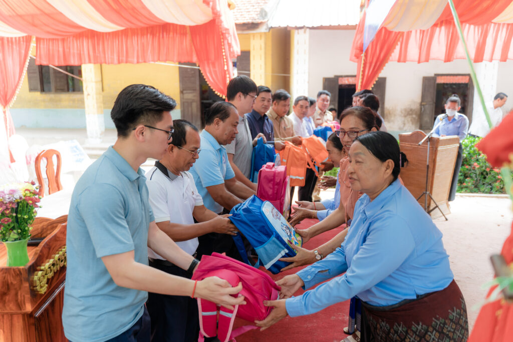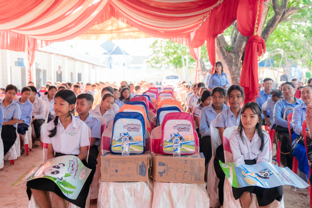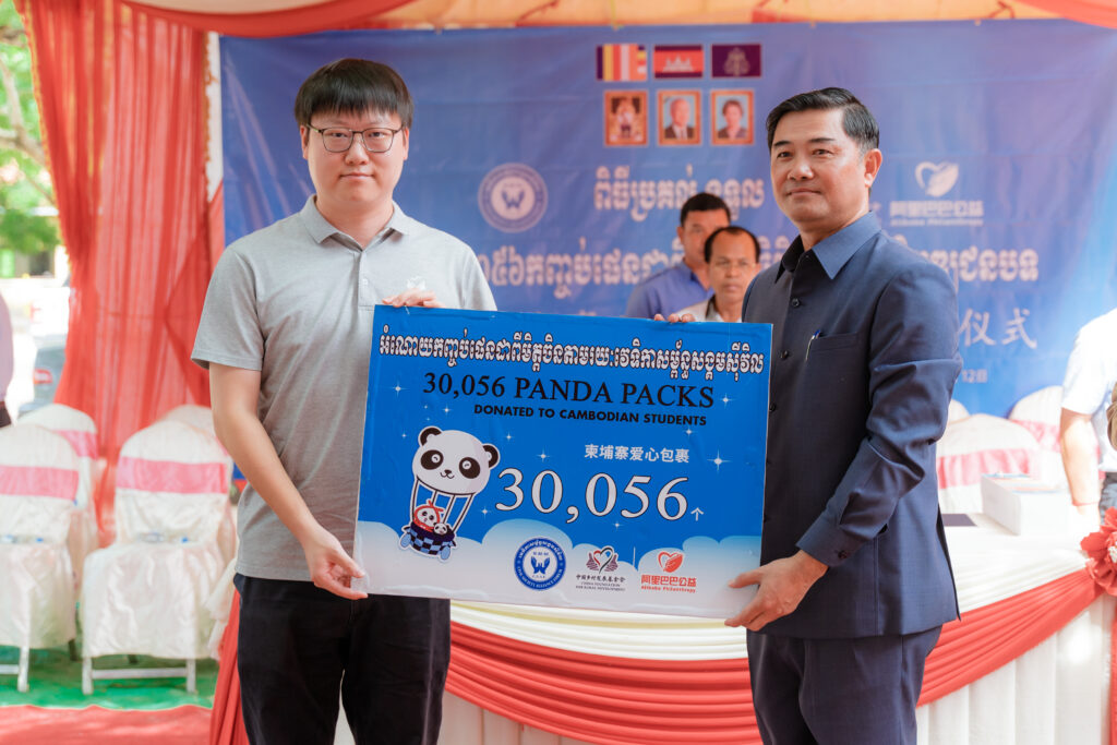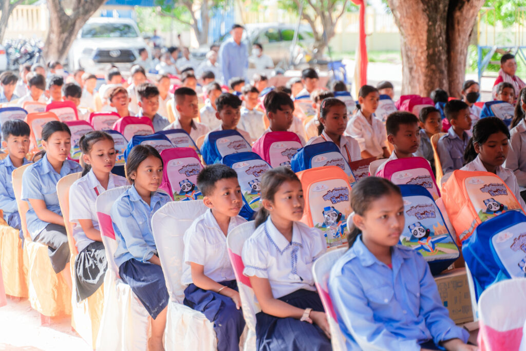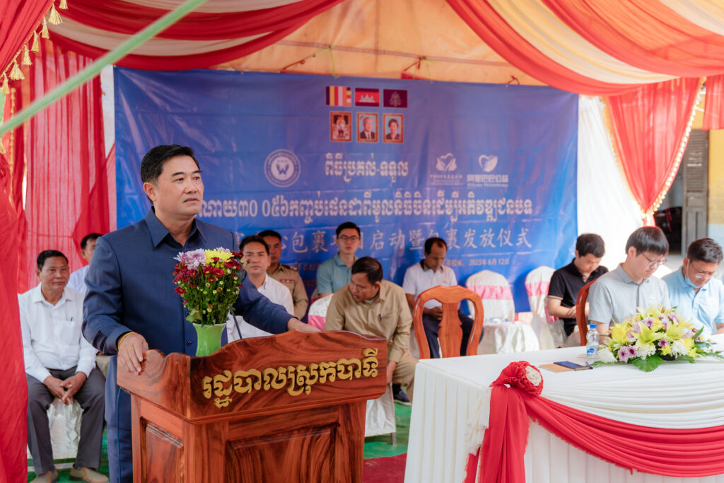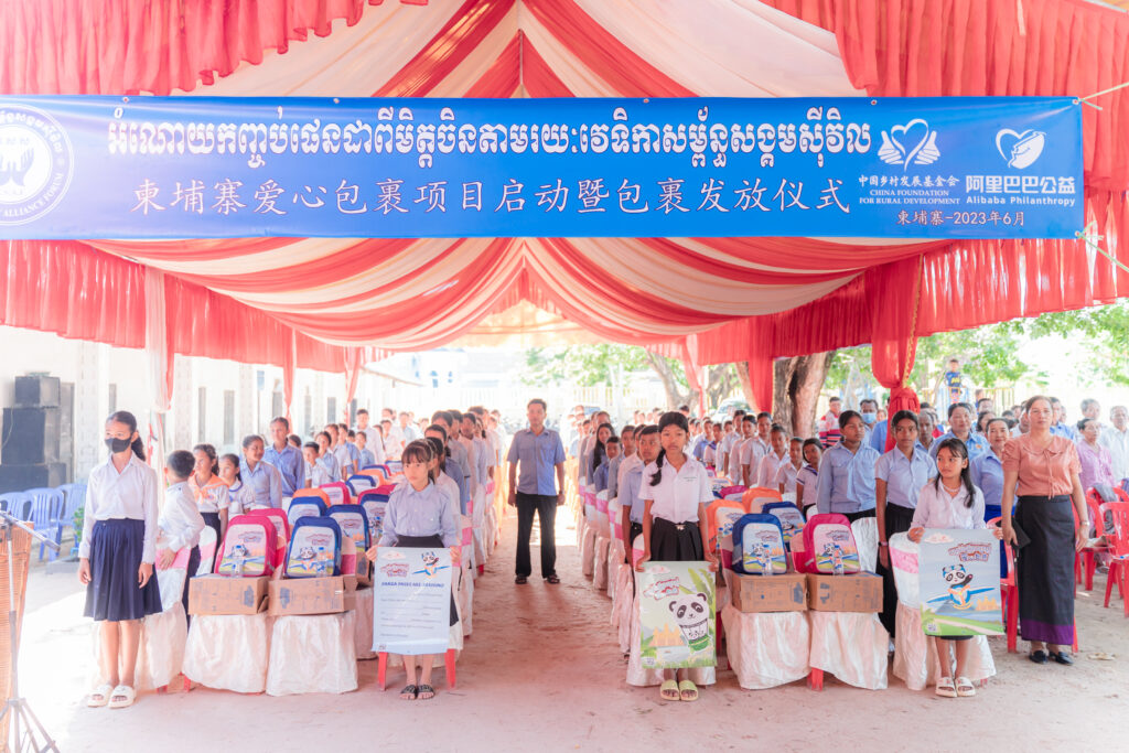 ថ្លែងទៅកាន់អង្គពិធីដោយរួមមានសិស្សានុសិស្សដែលពោរពេញដោយក្តីសប្បាយរីករាយយ៉ាងខ្លាំង លោក Wang Haoyu តំណាងមូលនិធិចិនដើម្បីអភិវឌ្ឍជនបទបានជម្រាបជូនពីសាវតាររបស់មូលនិធិដែលបានបង្កើតតាំងពីឆ្នាំ១៩៨៩ ហើយចាប់តាំងពីឆ្នាំ២០១៨មក មូលនិធិបានសហការជាមួយវេទិកាសម្ព័ន្ធសង្គមស៊ីវិលក្នុងការផ្តល់ជូននូវសម្ភារៈសិក្សាដល់សិស្សានុសិស្សនៅទូទាំងប្រទេសកម្ពុជា។ សម្ភារៈសិក្សាទាំងនេះរួមមានកាតាប ប៊ិក ខ្មៅដៃ ជ័រលុប ហ្វឺត បន្ទាត់ និងសម្ភារៈឧបទ្ទេសជាច្រើនទៀត។ រយៈពេល៥ឆ្នាំកន្លងមកនេះ តាមរយៈវេទិកាសម្ព័ន្ធសង្គមស៊ីវិល សម្ភារៈសិក្សាចំនួនជាង១៨ម៉ឺនកញ្ចប់ដែលជាអំណោយរបស់មូលនិធិចិនដើម្បីអភិវឌ្ឍជនបទបានចែកដល់សិស្សានុសិស្សនៅទូទាំងប្រទេសកម្ពុជា។