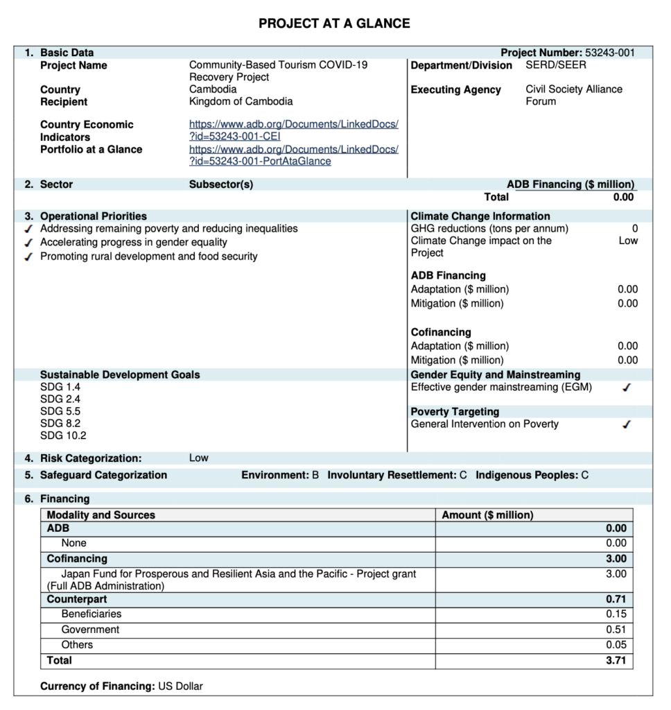 តាមរយៈការអភិវឌ្ឍន៍ទេសចរណ៍ និងការលើកកម្ពស់ជីវភាព គម្រោងនេះនឹងជំរុញឱ្យមានការងើបឡើងវិញនៃសេដ្ឋកិច្ចក្នុងភូមិគោលដៅទាំង២ ពីផលប៉ះពាល់នៃជំងឺរាតត្បាតកូវីដ-១៩។