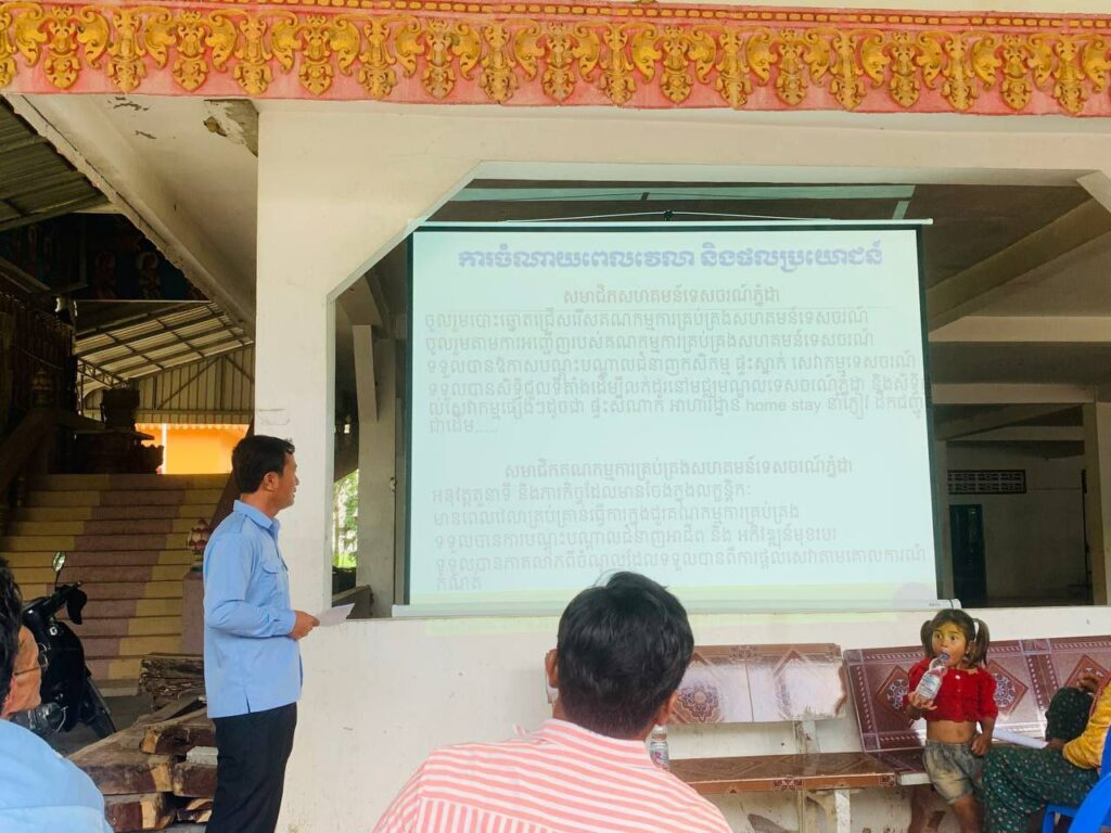 ការប្រជុំសហគមន៍ផ្សព្វផ្សាយពីគម្រោងស្តារវិស័យទេសចរណ៍ សហគមន៍បន្ទាប់ពីវិបត្តិកូវីដ-១៩ នៅឃុំព្រែកផ្ទោល